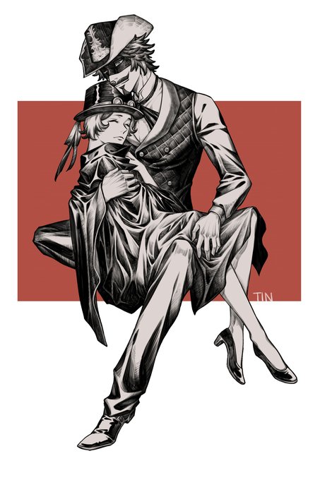 雛を 犬猫に描いたカウボーイ 今まで描いた中で1番良きでは ただ背景めっちゃ凝った 衣装が衣装がだから 黒白赤でまとめたかったの 第五人格 第五人格イラスト カウボーイ カヴィン アユソ 逆刃の鞭